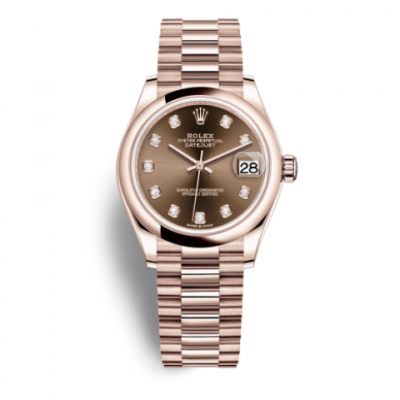 Rolex Oyster Perpetual Series 278245 - 83365 G Chocolate with 10 Diamonds, Automatic Mechanical Women's Watch