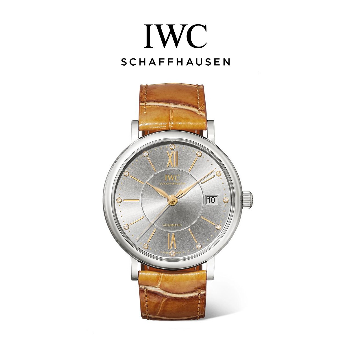 IWC Official Authentic Portofino Collection Women's Diamond Stainless Steel Mechanical Watch